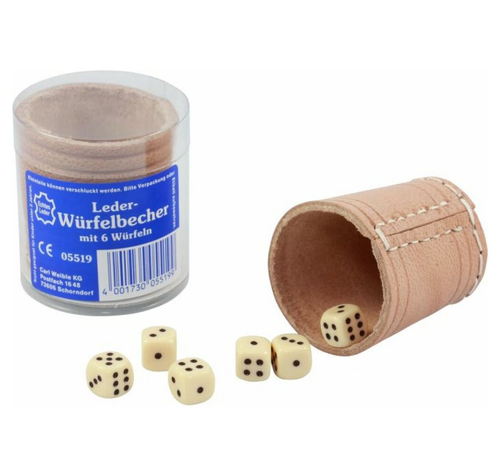Erleben Sie das ultimative Spielerlebnis mit dem Carl Weible Spiel Leder-Würfelbecher mit 6 Würfeln