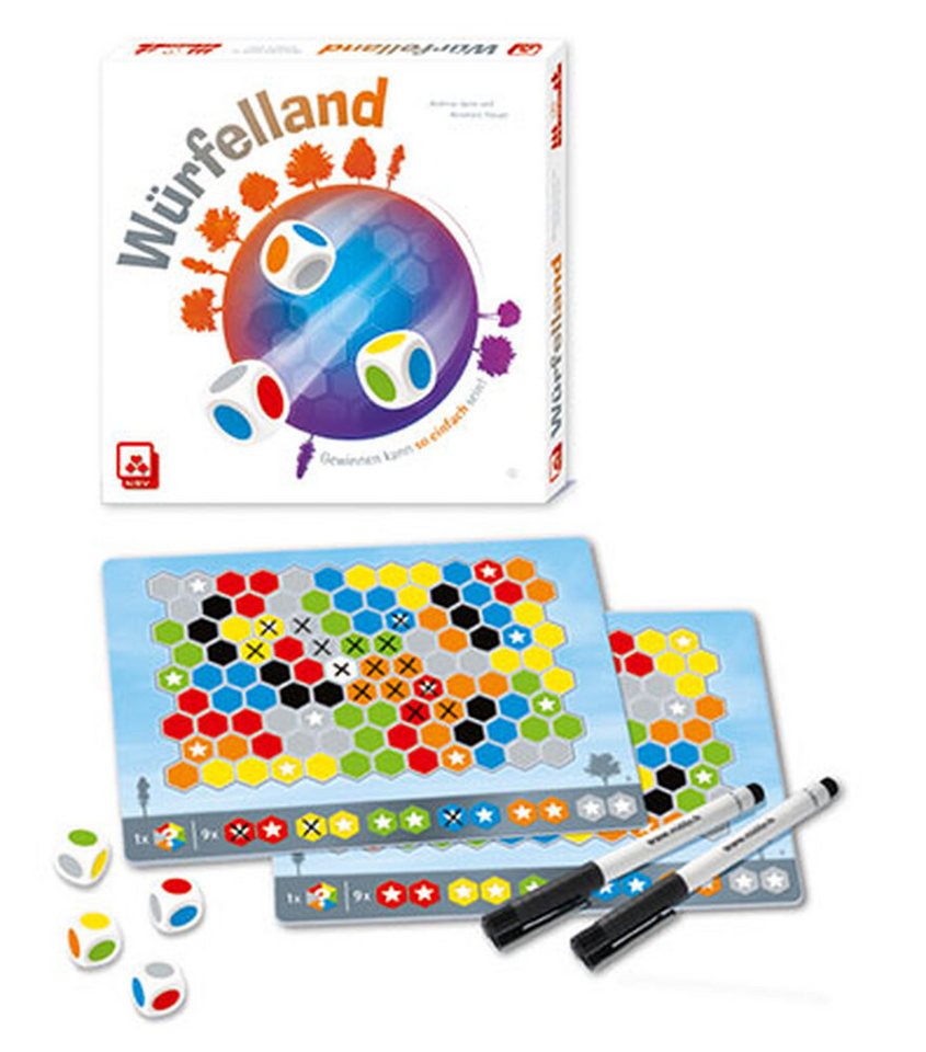 Die inkludierte Europa-Erweiterung erweitert das Spiel um eine neue, detailreiche Spielmatte, die den europäischen Kontinent darstellt. Diese Ergänzung bringt nicht nur neue landschaftliche und kulturelle Elemente in das Spiel, sondern auch neue Spielregeln und Mechaniken. Spieler können nun spezifische europäische Regionen besiedeln, die jeweils eigene Vor- und Nachteile mit sich bringen. Handelsrouten über den Kontinent werden essentiell, und die Konkurrenz um lukrative europäische Städte und Handelsplätze verspricht intensive strategische Duelle. Diese Erweiterung ist perfekt für Spieler, die bereits die Grundregeln von Würfelland beherrschen und nach einer neuen, anspruchsvollen Herausforderung suchen, die das Spielerlebnis auf ein neues Level hebt.