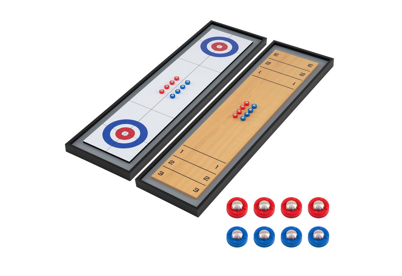 Entdecken Sie Doppelten Spielspaß: COSTWAY Spiel, 2-in-1 Brettspiel mit 8 Scheiben, Shuffleboard & Curling