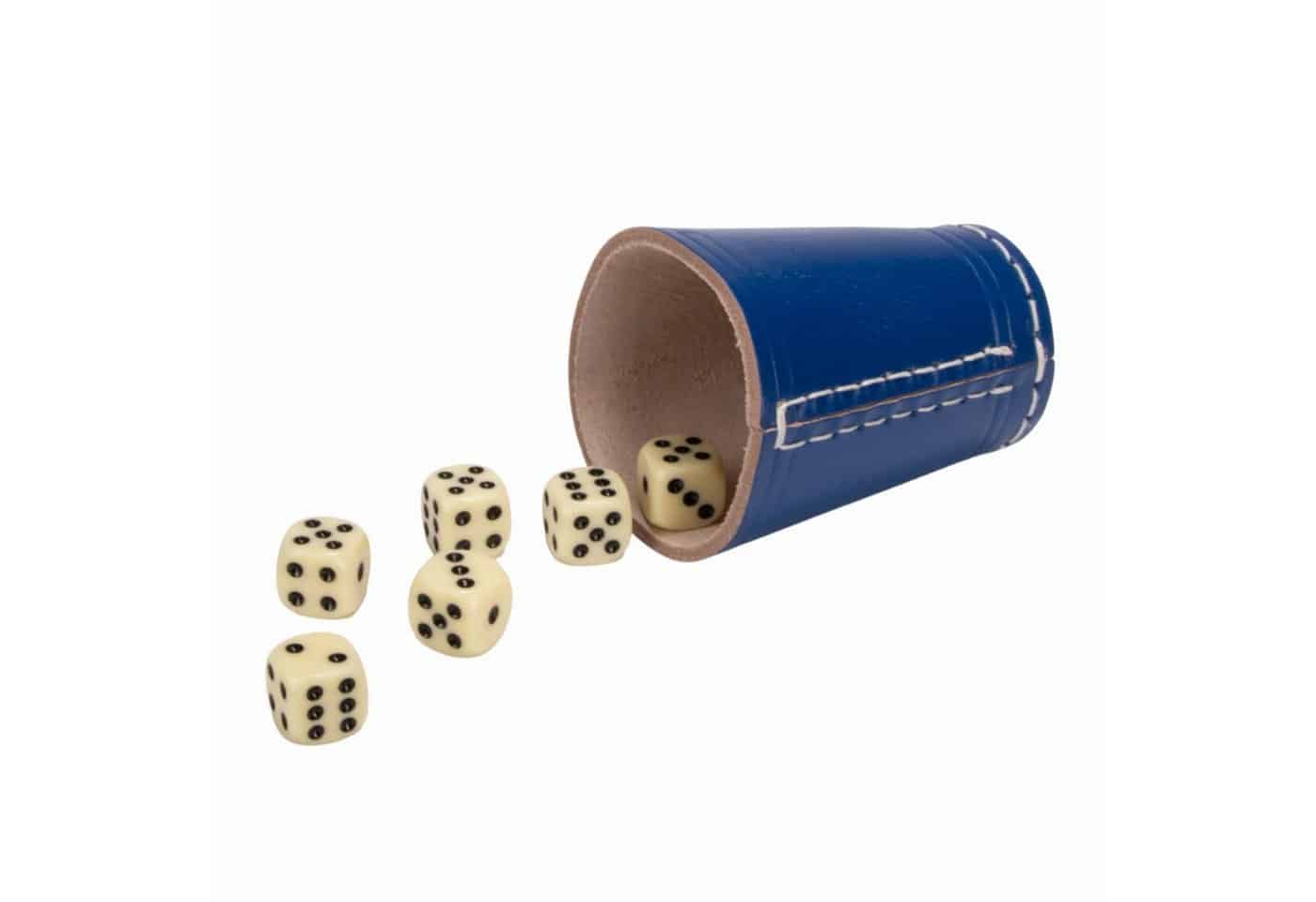 Häufig gestellte Fragen zu GICO Spielesammlung Würfelbecher blau (echt Leder) Standard (9 cm) mit 6 Würfeln 5904
