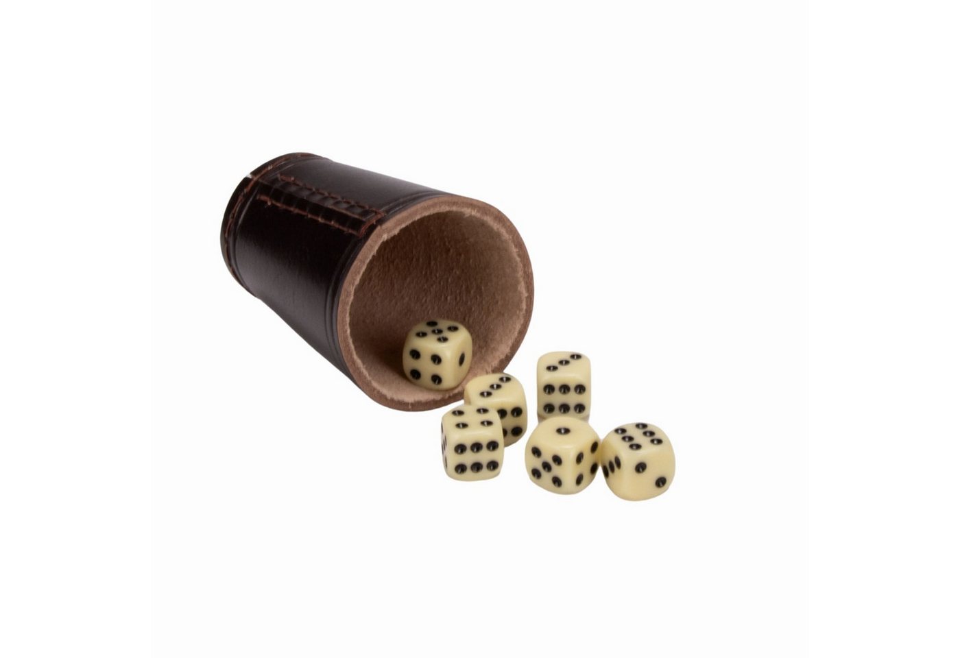 - Ästhetische Braunfärbung: Die klassische braune Farbgebung des Leders verleiht dem Becher eine zeitlose Eleganz und fügt sich harmonisch in jede Spielumgebung ein.