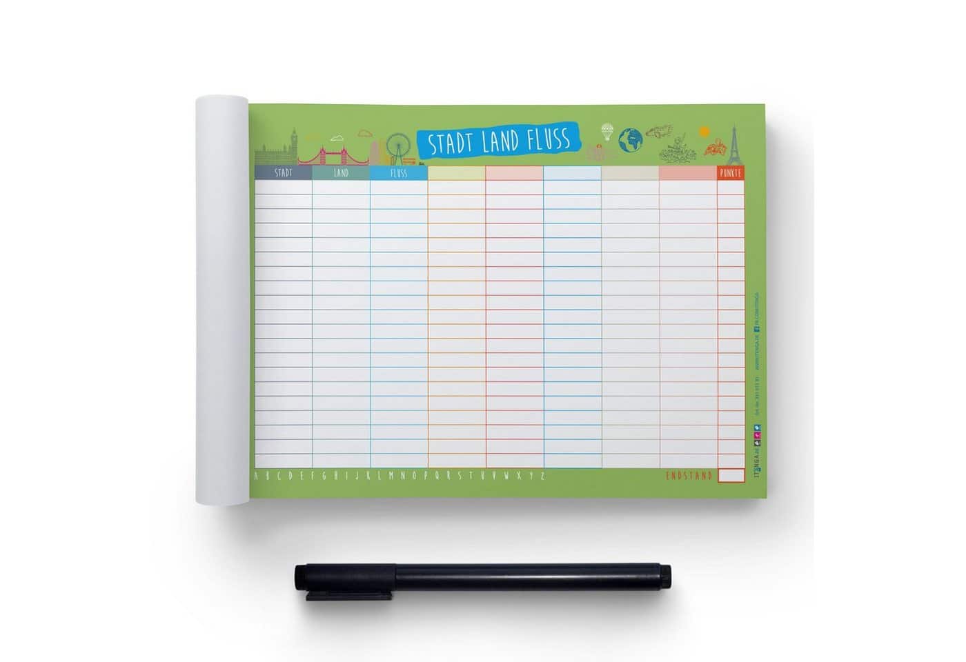 Das ultimative Werkzeug für unvergessliche Spieleabende: itenga Spieleblock Stadt Land Fluss DIN A5