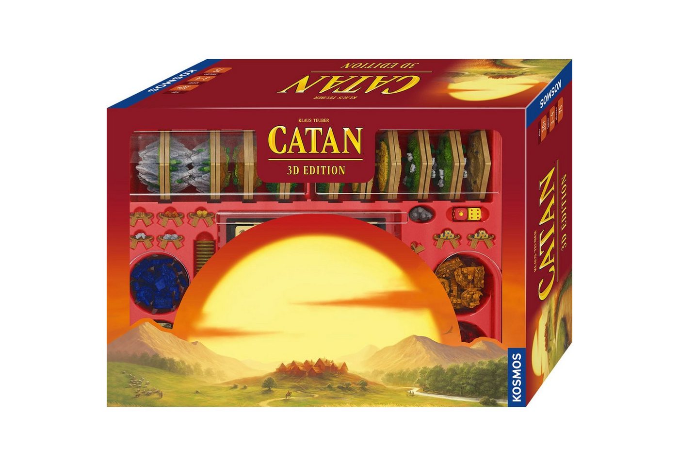 | Verpackungsinhalt | Umfassende Komponenten für das vollständige Basisspiel, inklusive 3D-Geländefeldern, Spielfiguren, Rohstoffkarten, Entwicklungskarten und Würfeln. |