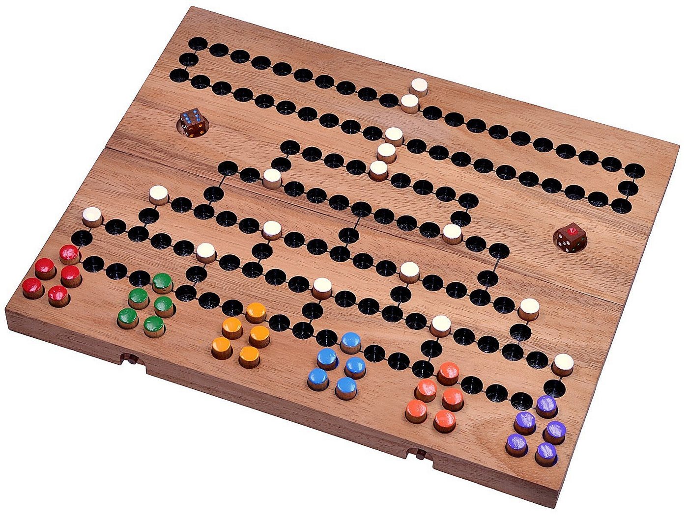 | Material | Hochwertiges, naturbelassenes Holz, sorgfältig verarbeitet und geschliffen. Robuste Spielsteine und Würfel. |