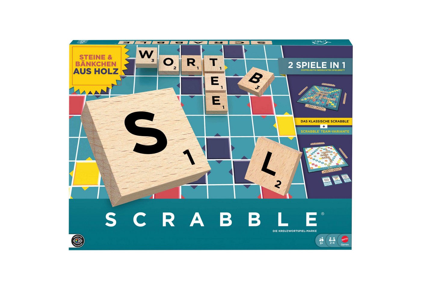 Mattel Games Scrabble Original Holz „2 in 1“: Das ultimative Wortspiel-Erlebnis für Kenner und Liebhaber