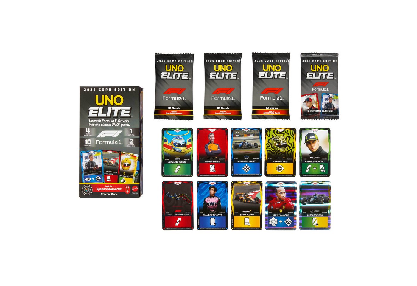 Produktmerkmale und Vorteile des Mattel games Spiel UNO Elite F1 Starter-Sets