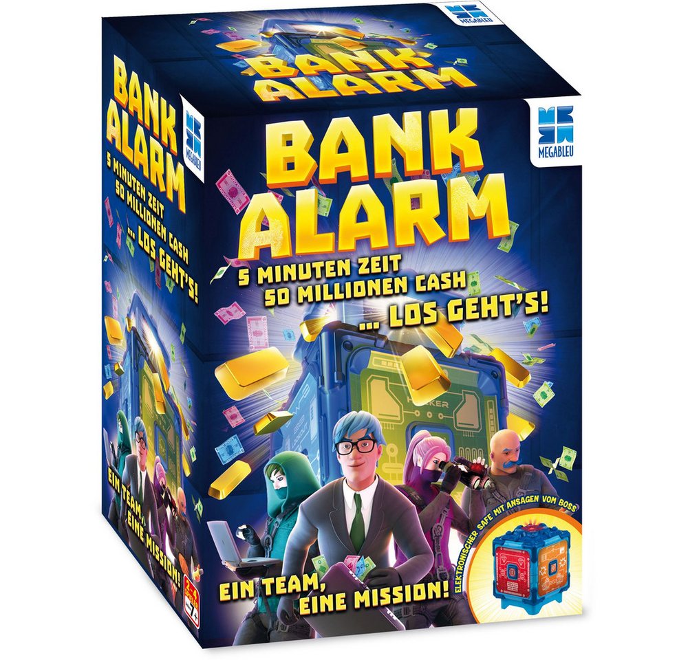 MEGABLEU Spiel Bank Alarm ist ein kooperatives Spiel. Alle Spieler arbeiten als Team zusammen, um das gemeinsame Ziel zu erreichen. Nur gemeinsam können sie erfolgreich sein.