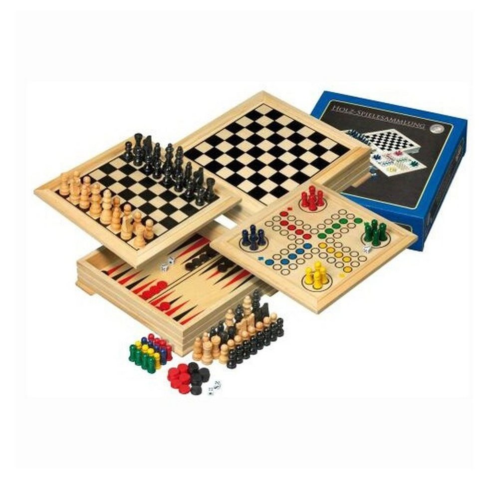 Die genaue Zusammenstellung der Spiele kann je nach Modell variieren, typischerweise enthält die Philos Spielesammlung – Holz – Reise-Edition jedoch eine Auswahl klassischer Spiele wie Dame, Mühle, eventuell vereinfachte Schachvarianten und Würfelspiele. Alle Spiele sind in einer kompakten Holzbox untergebracht, die für den Transport optimiert ist.