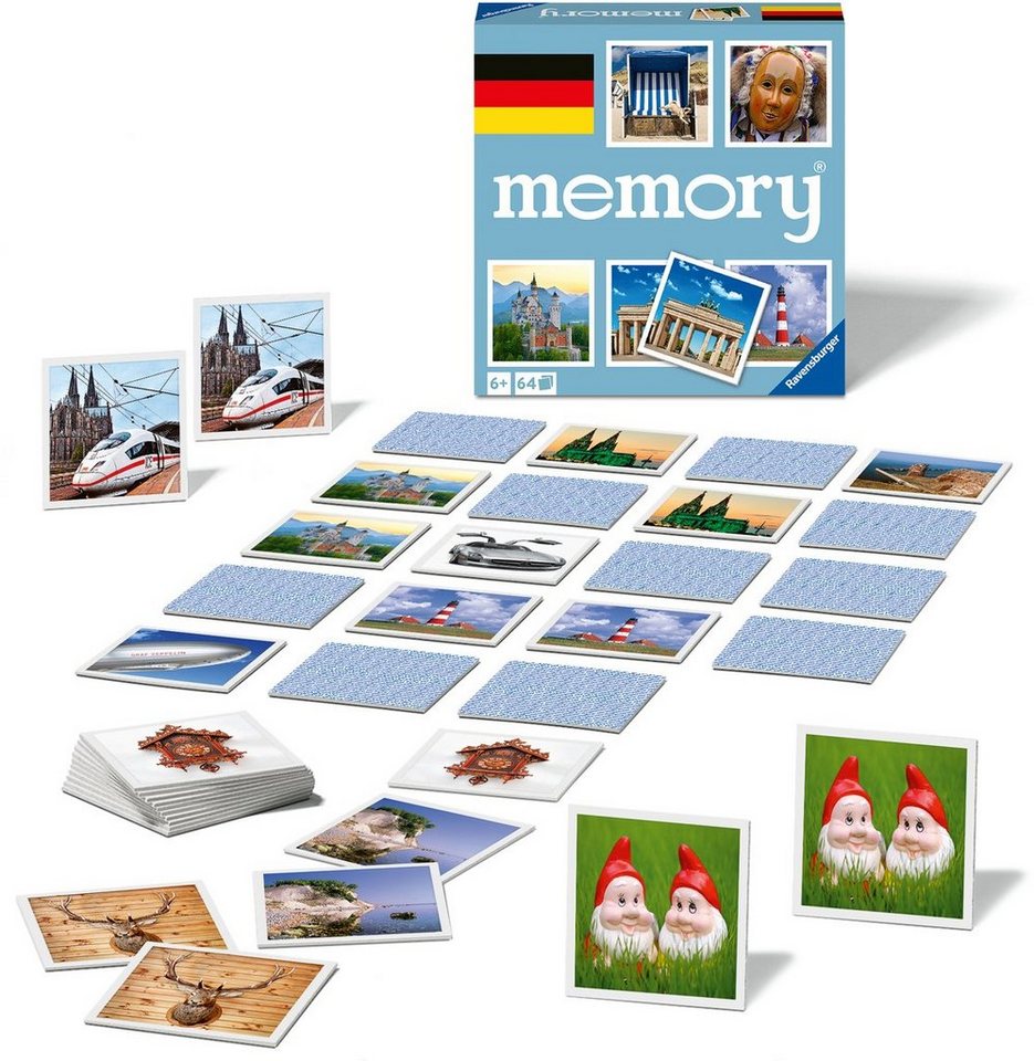 Ravensburger Spiel Deutschland memory®, Merkspiel, Made in Europe ist für Kinder ab 3 Jahren empfohlen. Die einfachen Regeln und die ansprechenden Motive ermöglichen jedoch auch älteren Kindern und Erwachsenen eine herausfordernde und unterhaltsame Spielrunde.