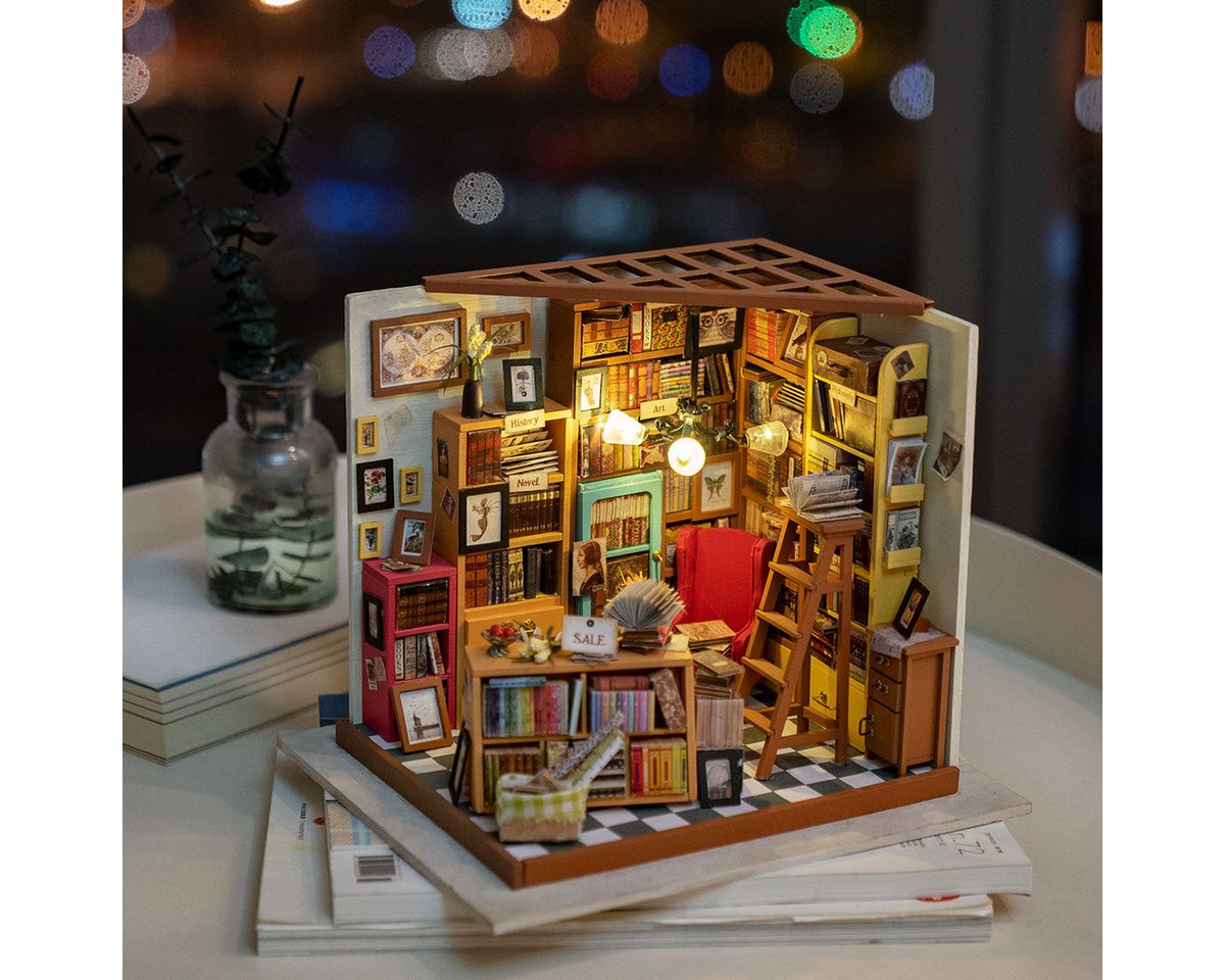 Das Robotime Sam’s Study Miniaturhaus ist mehr als nur ein Bausatz; es ist eine Einladung, in eine Welt voller feiner Details und sorgfältiger Konstruktion einzutauchen. Jedes Element, von den winzigen Büchern im Regal bis hin zu den authentisch nachgebildeten Möbelstücken, wurde entworfen, um eine realistische und ansprechende Miniaturumgebung zu schaffen. Die Herausforderung liegt in der Präzision, die erforderlich ist, um jedes Teil korrekt zu platzieren und so ein harmonisches Gesamtbild zu erzielen.