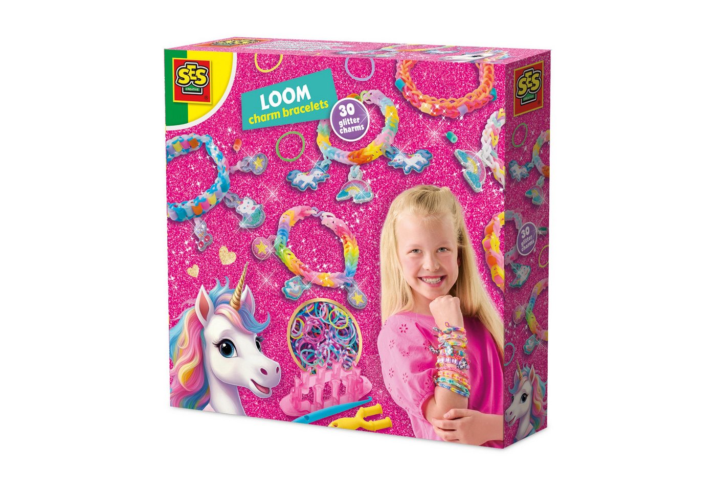 Das SES Creative Spiel SES Loom Einhorn Armbänder Set ist prall gefüllt mit allem, was benötigt wird, um sofort mit dem Basteln zu beginnen: