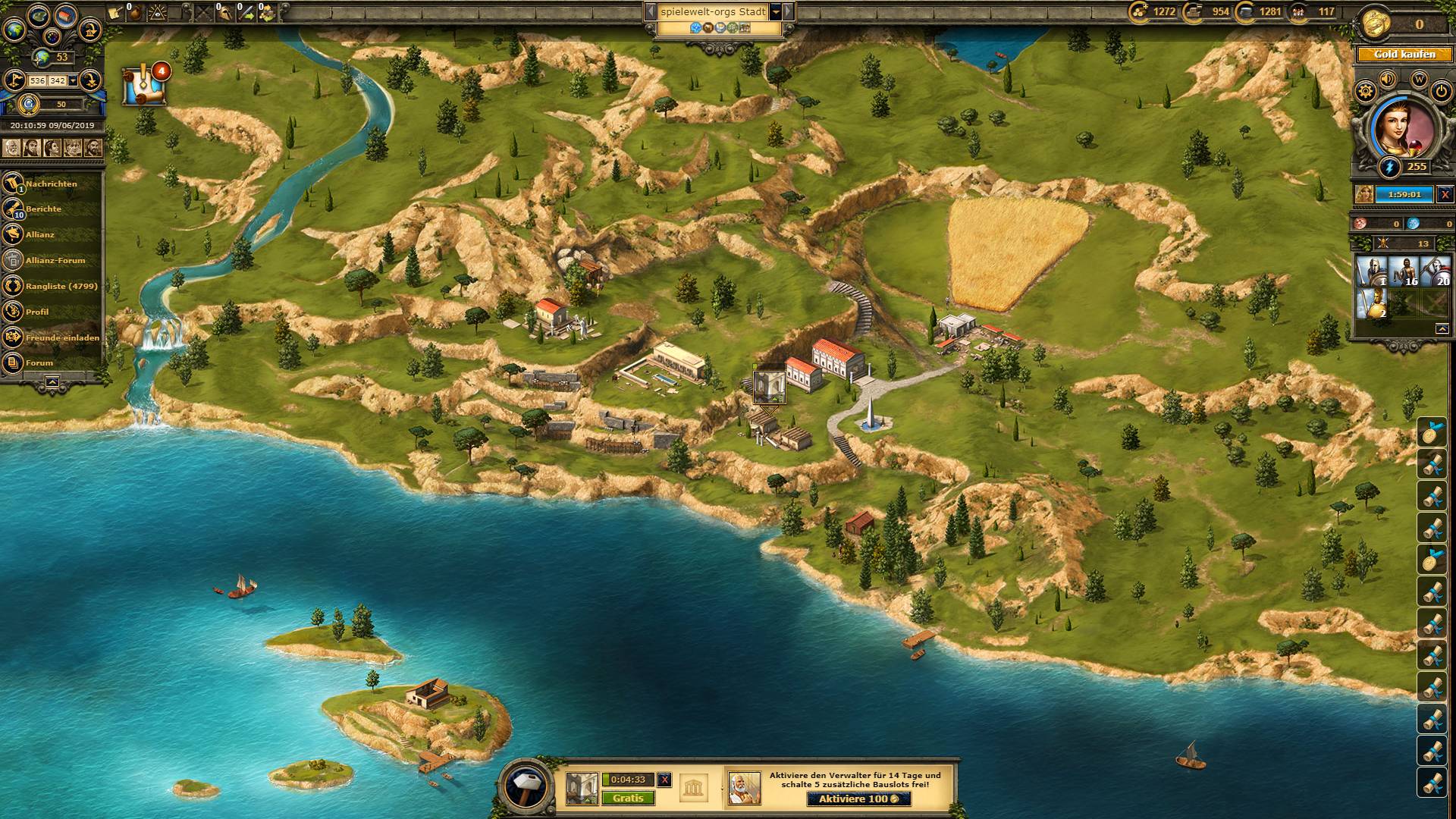 Man ist bei Grepolis nicht auf die Heimatstadt bzw. Heimatinsel beschränkt, später kann man neue Städte auf anderen Inseln gründen oder auch Städte anderer Mitspieler einnehmen und so sein Reich beständig weiter ausbauen. Doch bis dahin ist es noch ein weiter Weg. (Akademie Stufe 28, Hafen Stufe 20, 30k Rohstoffe)