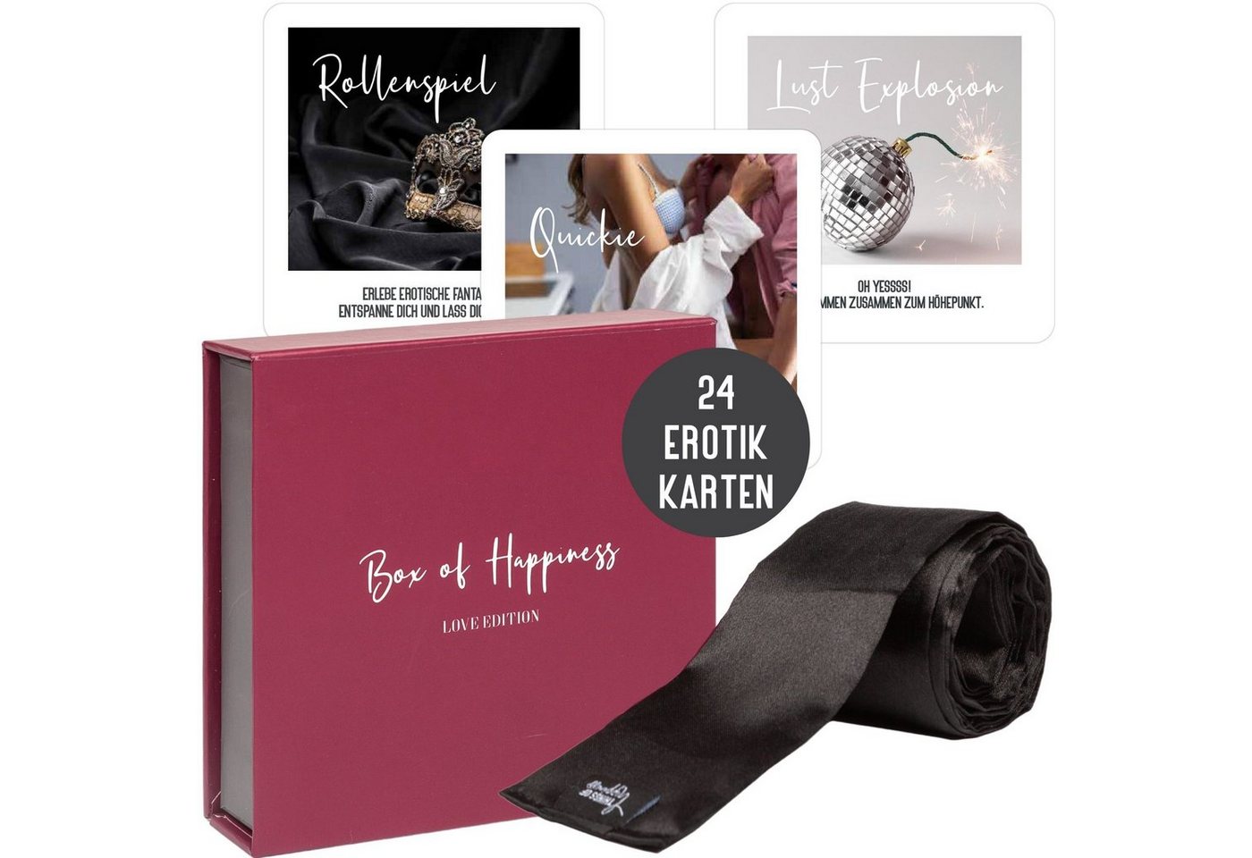 Suchen Sie nach einer Möglichkeit, die Intimität und den Spaß in Ihrer Beziehung neu zu beleben? Das Things of Happiness Spiel mit 24 Erotik Gutscheinen inklusive einer hochwertigen Augenbinde ist die ideale Lösung für Paare, die ihre sexuelle Verbindung vertiefen, die Leidenschaft neu entfachen und gemeinsam unvergessliche Momente erleben möchten. Dieses liebevoll gestaltete Set bietet eine strukturierte und zugleich spielerische Herangehensweise, um den Alltagstrott zu durchbrechen und die Erfüllung im Schlafzimmer zu steigern.