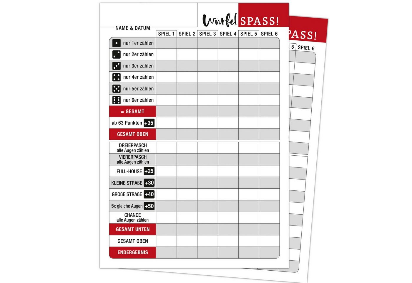 - Optimiert für Yatzy und ähnliche Würfelspiele: Die Felder sind logisch angeordnet und entsprechen den gängigen Punktesystemen, was eine schnelle Erfassung und Eintragung ermöglicht.