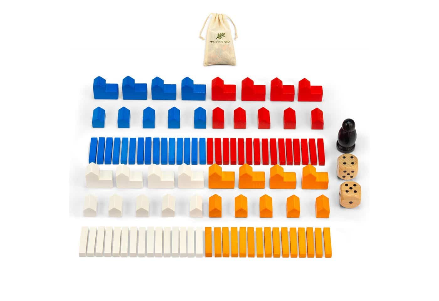 FAQ – Häufig gestellte Fragen zu Waldfelsen Spiel – Grundspiel Holzversion 4 Spieler passend für Die Siedler von Catan, Spielmaterial, Verschiedene Sets