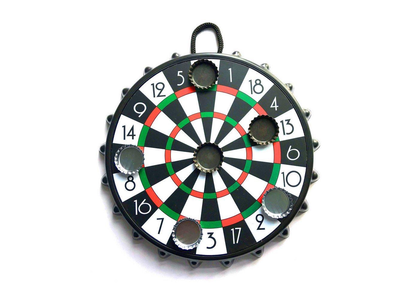 - Originelles Design: Die Verwendung von Kronkorken als Dartpfeile verleiht dem Spiel einen einzigartigen und humorvollen Charakter.